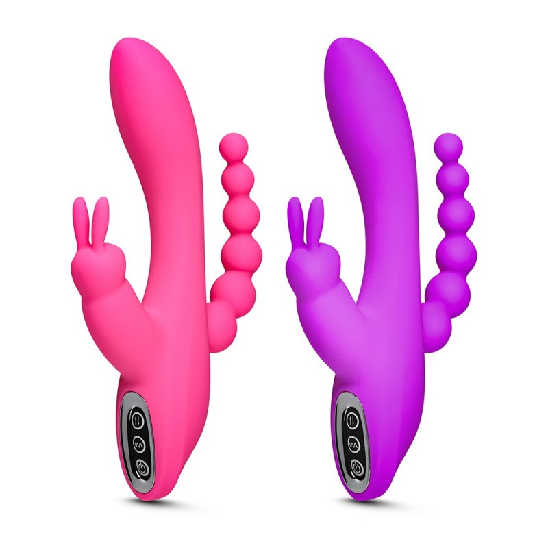 Disfruta el triple con este rabbit. El eje, el conejito y las bolitas anales te llenarán de placer