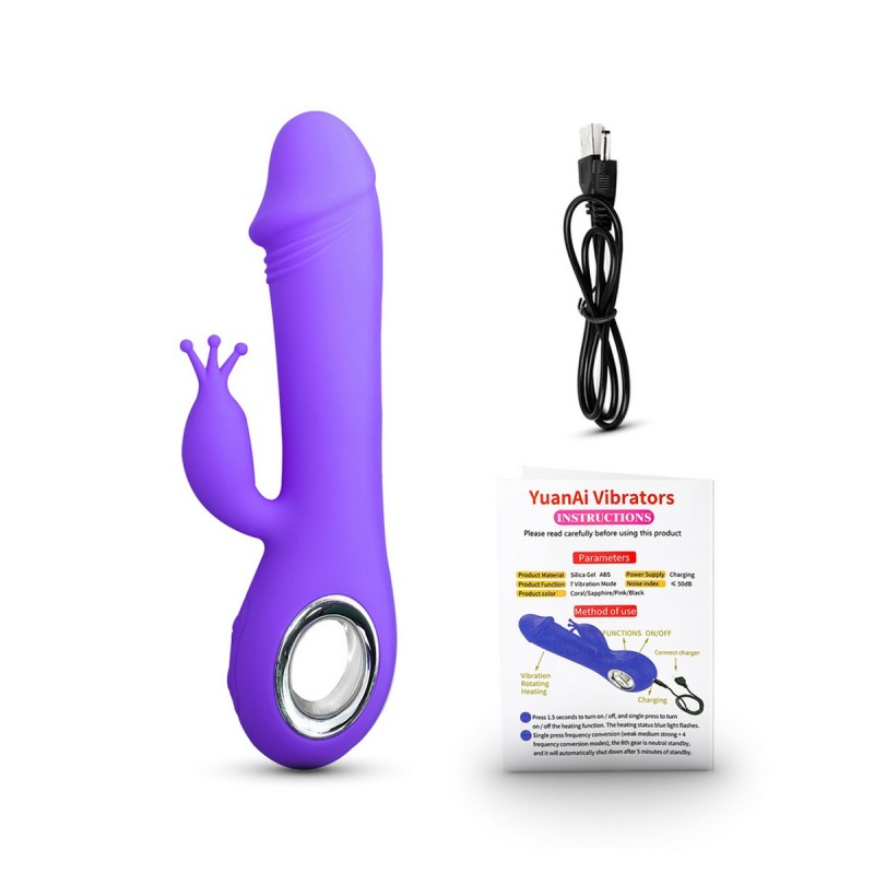 Vibrador de forma de pene de silicona recargable de 7 velocidades de color rosa con rotación y calefacción, silicona de grado médico. Libre de ftalatos y látex.