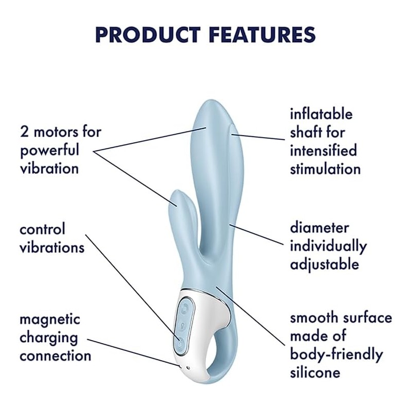 Air Pump Bunny 1 satisface el punto G y el clítoris con dos potentes motores. La punta inflable se puede agrandar individualmente y proporciona una fantástica sensación de plenitud.