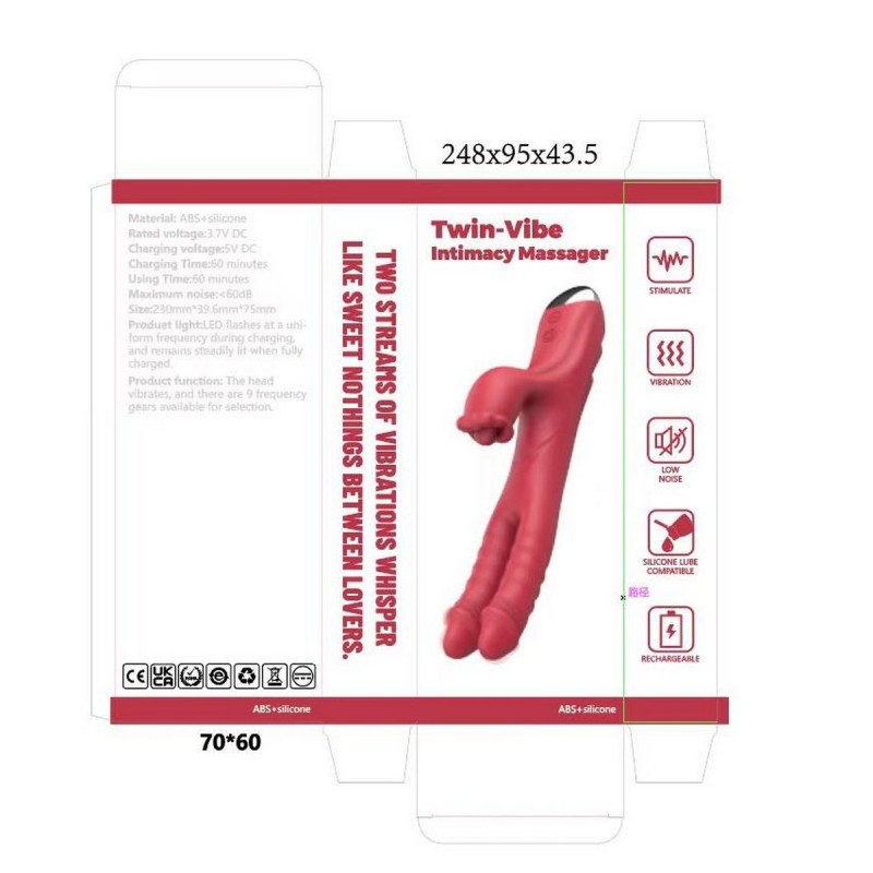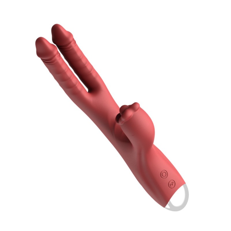 Funciones: Dildo doble: Golpeteo. Eje: Vibración. Rabbit: Vibración