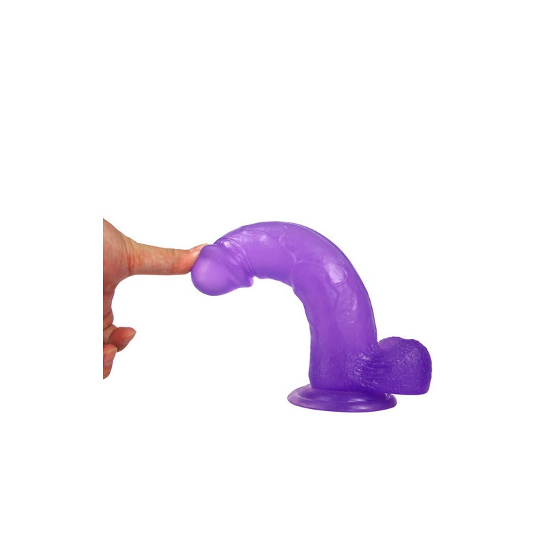 Este consolador realista, curvado y suavemente grande tiene un eje veteado, cabeza lisa y una base ancha y de ventosa, lo que lo hace perfecto para