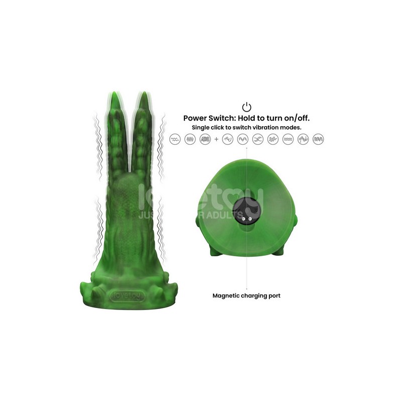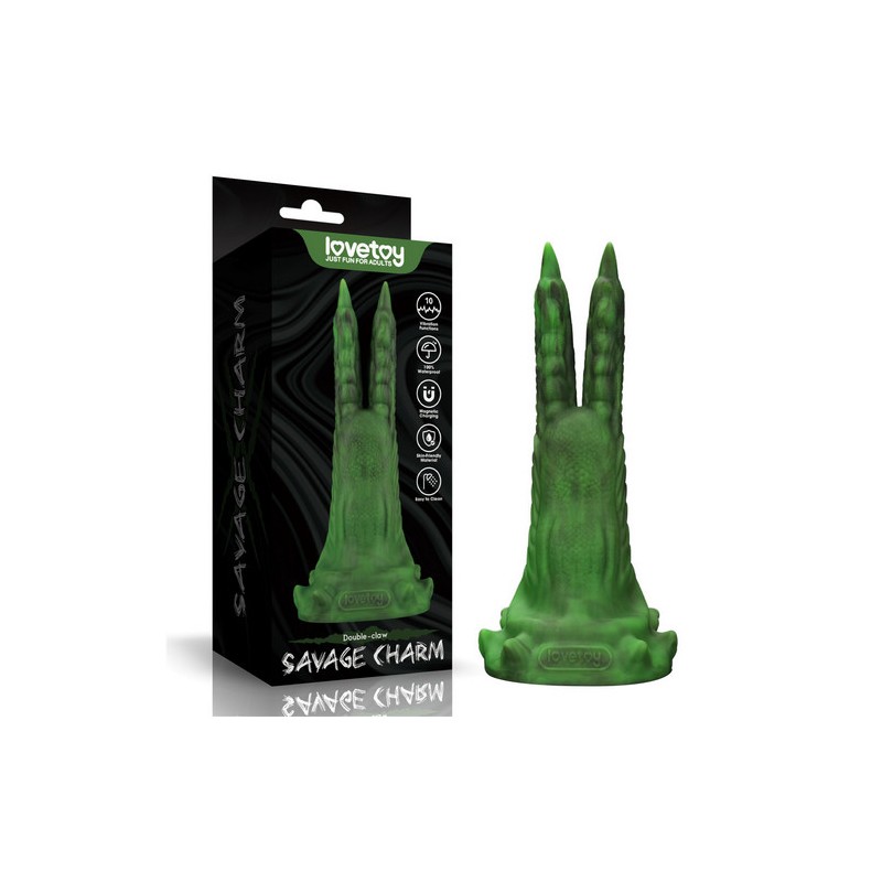 Presentamos nuestro consolador de fantasía de diseño único, el consolador de silicona vibratoria Savage Charm Double-Claw. Esta audaz creación presenta