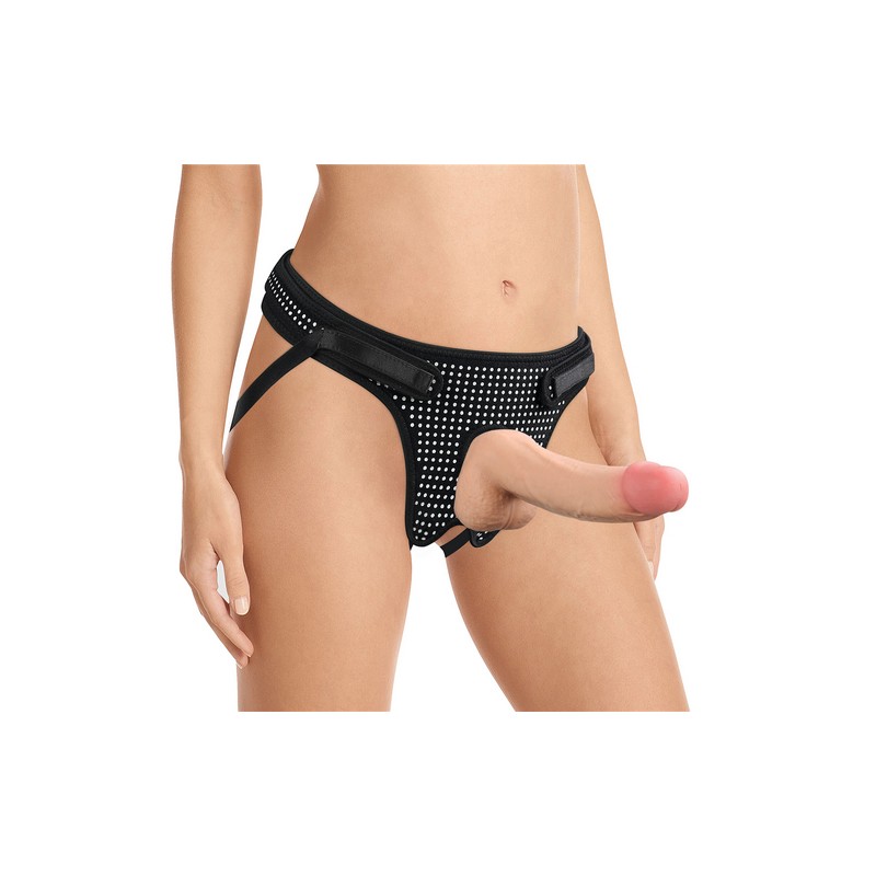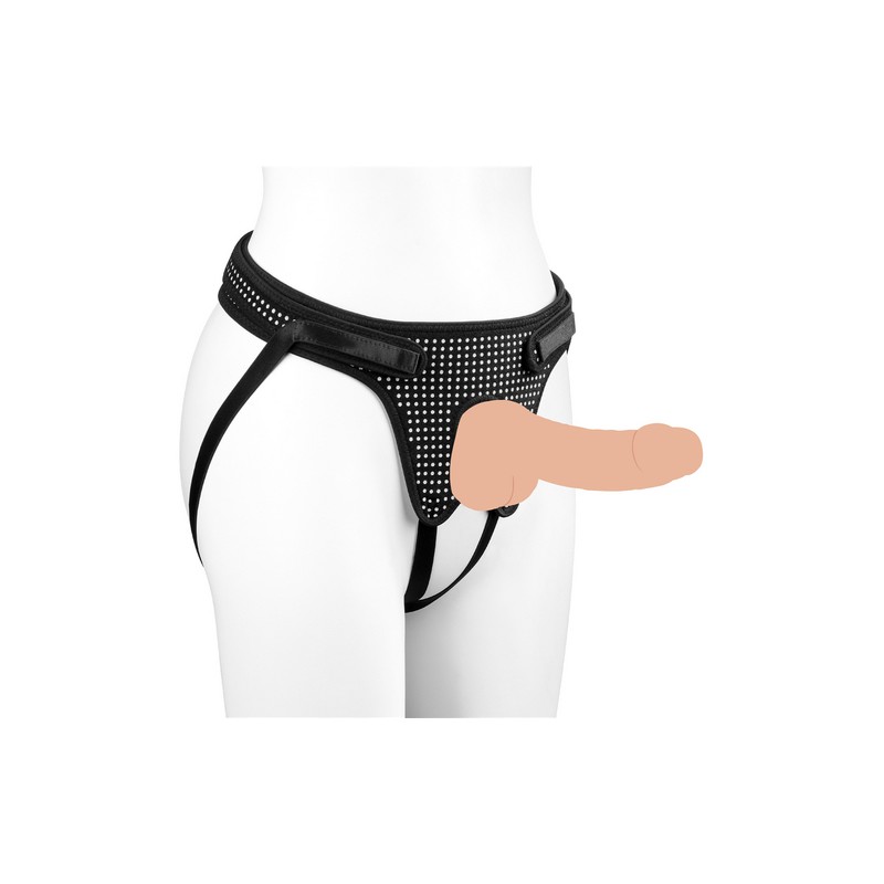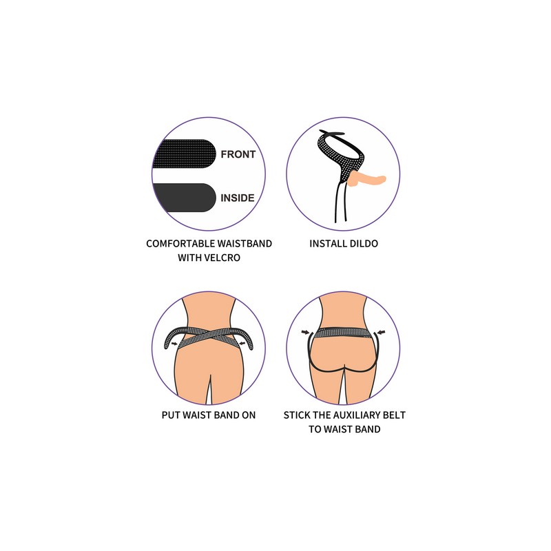 Fácil de despejar, arnés ajustable con correa diseñado para ajustarse a tu cuerpo. NO INCLUYE DILDO