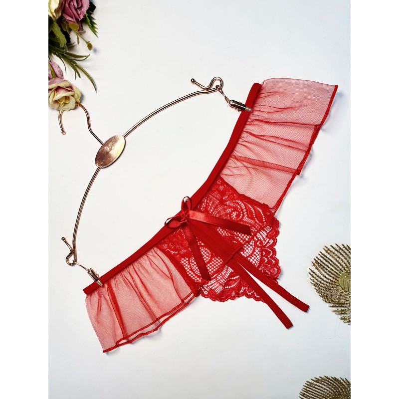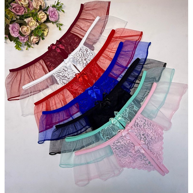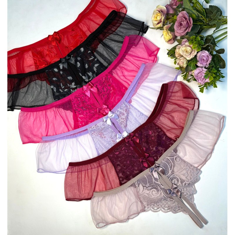 Tanga hilo abierta FANTASÍA 2 de encaje con micro falda de malla