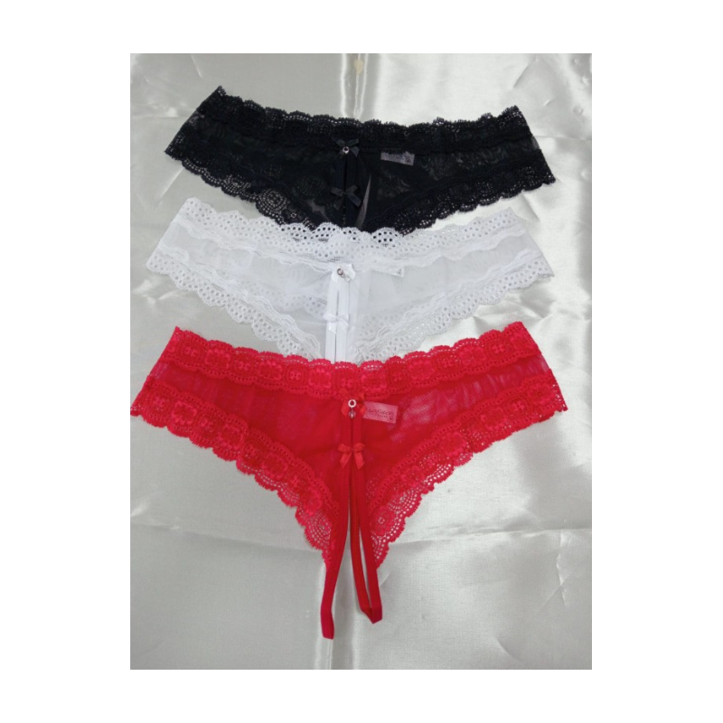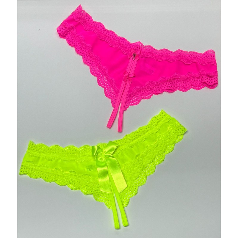 Delicada tanga hilo abierta de malla transparente, talla L